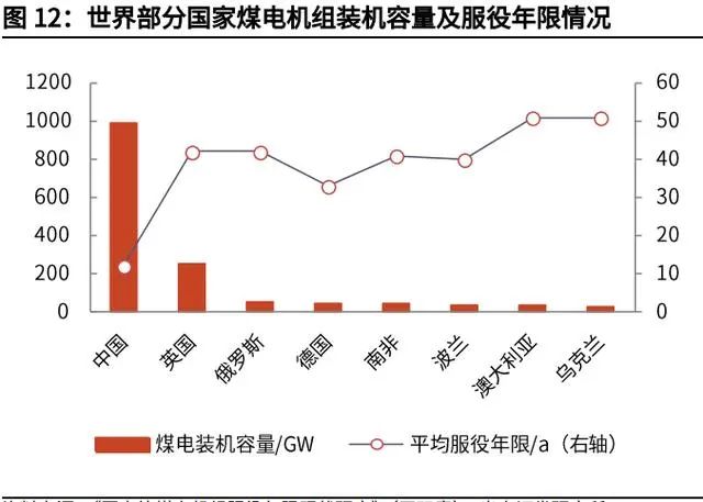 在陡峭的碳排放量下降曲线背后,是规模化的经济结构转型。这意味着我国当前经济结构下相当规模的存量资产将失去原有功能。煤电资产搁浅的问题,表明了转型需经历阵痛。一方面,从能源结构和自身禀赋来看,我国的能源消耗以煤为主,煤电发电量在 2019 年占总发电量的 65%,远超发达国家;另一方面,我国煤电机组的平均服役年限仅 12 年,而发达国家普遍达到 40 年以上。更快的碳排放量下降斜率,意味着将会有大量的未达到退役年限的煤电资产提前“搁浅”。根据牛津大学 2017 年研究,在不同的情景假设下,我国煤电搁浅资产规模估算 可能高达 30,860-72,010 亿元(合 4,490-10,470 亿美元),相当于中国 2015 年 GDP 的 4.1-9.5%。由于近年来我国仍在新建煤电机组,实际搁浅规模可能更大。